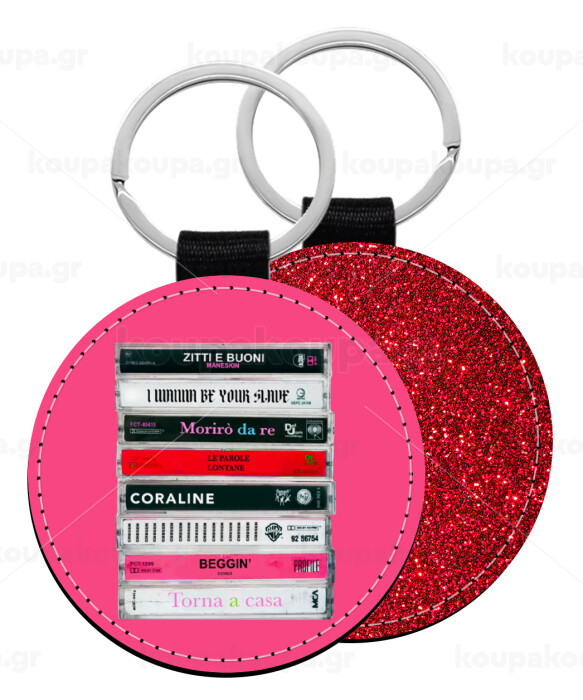 Maneskin Cassette, Μπρελόκ Δερματίνη, στρογγυλό ΚΟΚΚΙΝΟ (5cm)