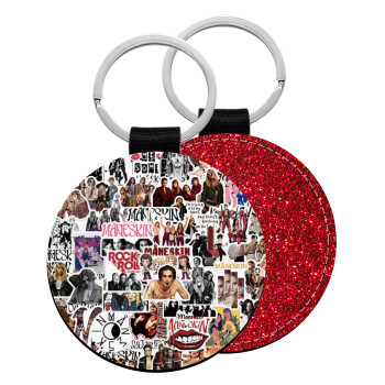 Maneskin stickers, Μπρελόκ Δερματίνη, στρογγυλό ΚΟΚΚΙΝΟ (5cm)