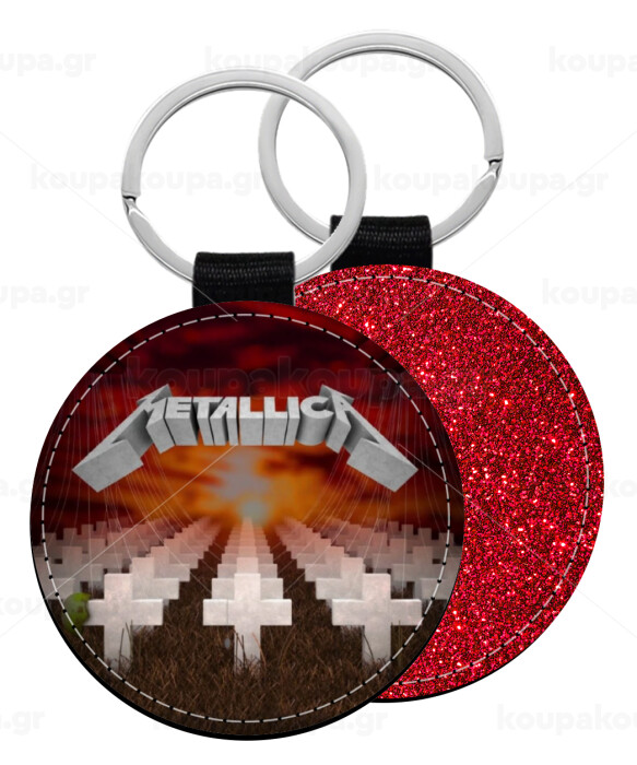 Metallica master of puppets cover, Μπρελόκ Δερματίνη, στρογγυλό ΚΟΚΚΙΝΟ (5cm)