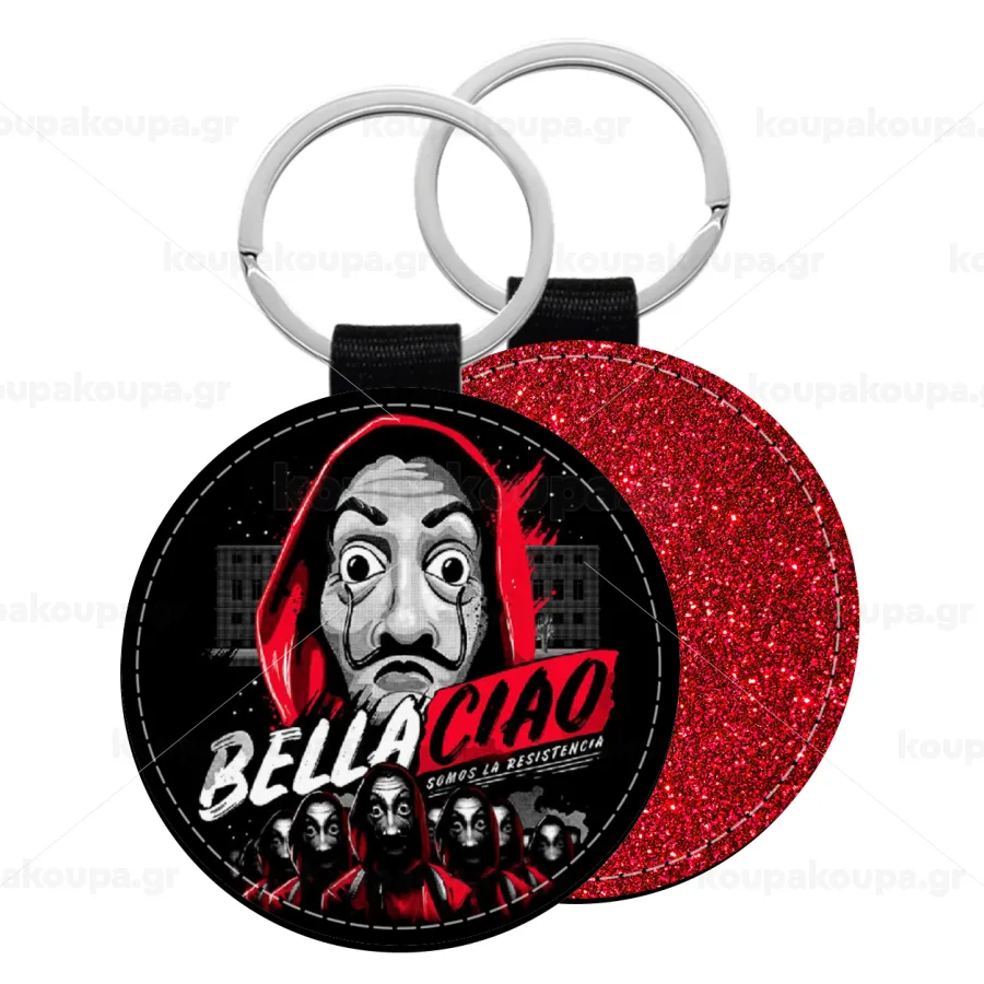 Bella Ciao Somos La resistencia, Μπρελόκ Δερματίνη, στρογγυλό ΚΟΚΚΙΝΟ (5cm)