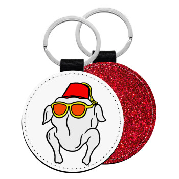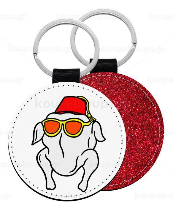 Friends turkey, Μπρελόκ Δερματίνη, στρογγυλό ΚΟΚΚΙΝΟ (5cm)
