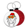Leatherette keychain with glitter on one side and high resistance leatherette on the other. Safety ring for the keys.