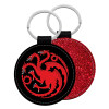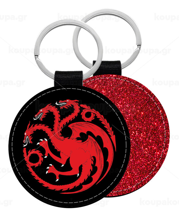 GOT House Targaryen, Fire Blood, Μπρελόκ Δερματίνη, στρογγυλό ΚΟΚΚΙΝΟ (5cm)