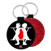 Leatherette keychain with glitter on one side and high resistance leatherette on the other. Safety ring for the keys.