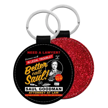 Need A Lawyer Then Call Saul Dks, Μπρελόκ Δερματίνη, στρογγυλό ΚΟΚΚΙΝΟ (5cm)