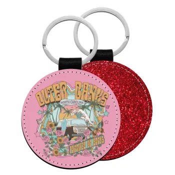 Outerbanks paradise on earth, Μπρελόκ Δερματίνη, στρογγυλό ΚΟΚΚΙΝΟ (5cm)