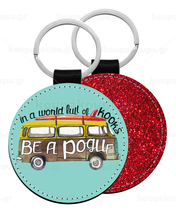 Outerbanks Pogue Life, Μπρελόκ Δερματίνη, στρογγυλό ΚΟΚΚΙΝΟ (5cm)