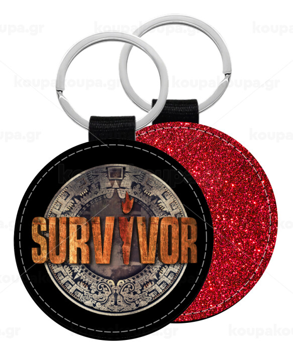 Survivor, Μπρελόκ Δερματίνη, στρογγυλό ΚΟΚΚΙΝΟ (5cm)