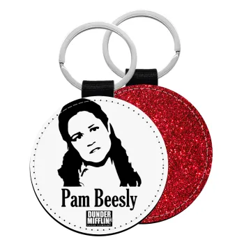 The office Pam Beesly, Μπρελόκ Δερματίνη, στρογγυλό ΚΟΚΚΙΝΟ (5cm)