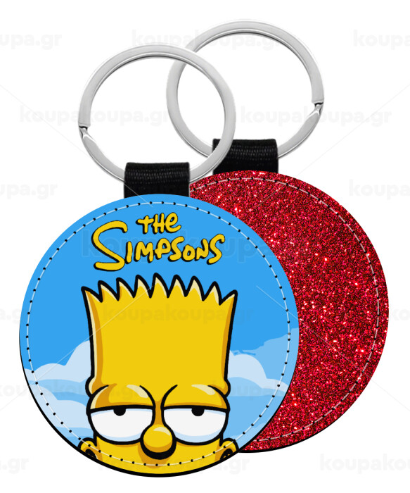 The Simpsons Bart, Μπρελόκ Δερματίνη, στρογγυλό ΚΟΚΚΙΝΟ (5cm)