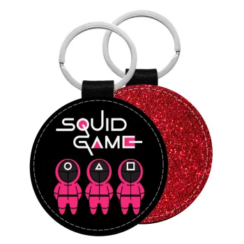 The squid game characters, Μπρελόκ Δερματίνη, στρογγυλό ΚΟΚΚΙΝΟ (5cm)