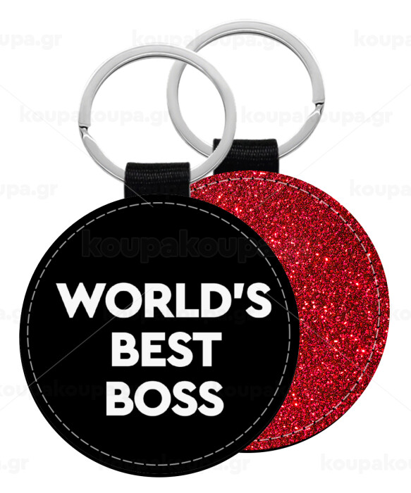 World's best boss, Μπρελόκ Δερματίνη, στρογγυλό ΚΟΚΚΙΝΟ (5cm)