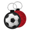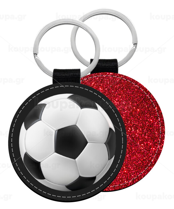 Soccer ball, Μπρελόκ Δερματίνη, στρογγυλό ΚΟΚΚΙΝΟ (5cm)