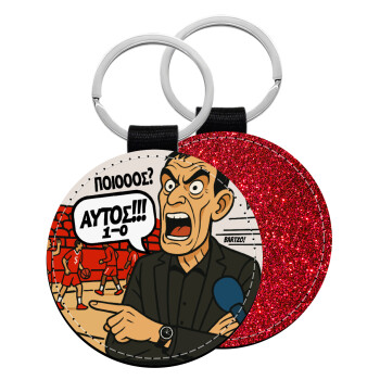 Μπαρτζό, Ποιος? Αυτός!!! 1-0, Μπρελόκ Δερματίνη, στρογγυλό ΚΟΚΚΙΝΟ (5cm)