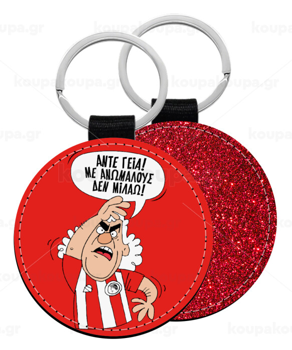 Τάκης, Άντε γεια, με ανώμαλους δεν μιλάω!, Μπρελόκ Δερματίνη, στρογγυλό ΚΟΚΚΙΝΟ (5cm)