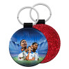 Leatherette keychain with glitter on one side and high resistance leatherette on the other. Safety ring for the keys.