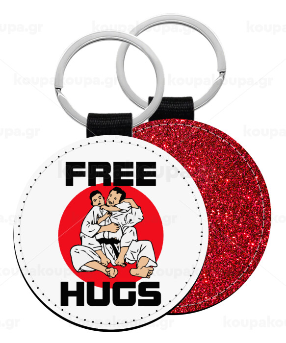 JUDO free hugs, Μπρελόκ Δερματίνη, στρογγυλό ΚΟΚΚΙΝΟ (5cm)