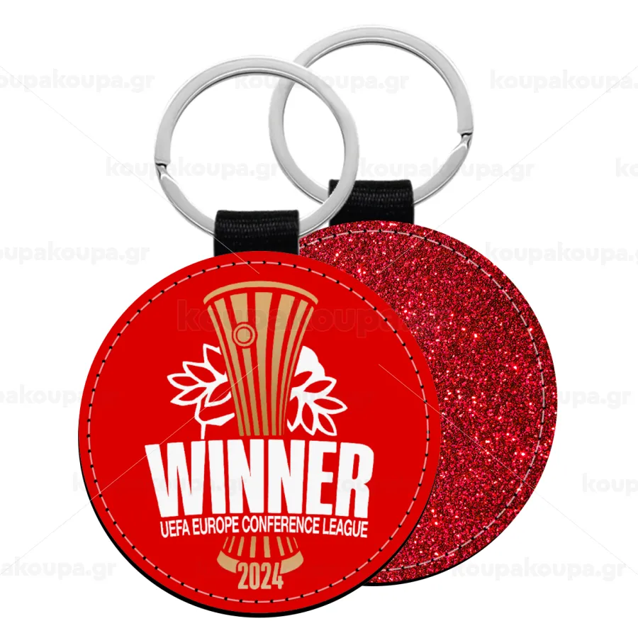 Europa Conference League WINNER, Μπρελόκ Δερματίνη, στρογγυλό ΚΟΚΚΙΝΟ (5cm)