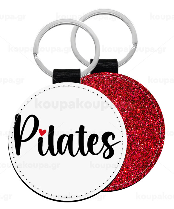 Pilates love, Μπρελόκ Δερματίνη, στρογγυλό ΚΟΚΚΙΝΟ (5cm)