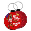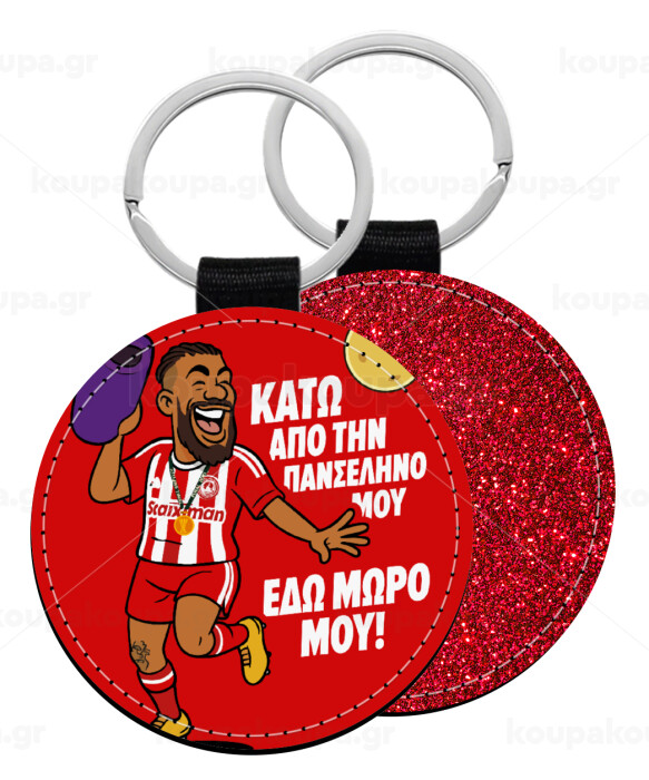 Ροντινέι, "ΚΑΤΩ ΑΠΟ ΤΗΝ ΠΑΝΣΕΛΗΝΟ ΜΟΥ!", Μπρελόκ Δερματίνη, στρογγυλό ΚΟΚΚΙΝΟ (5cm)