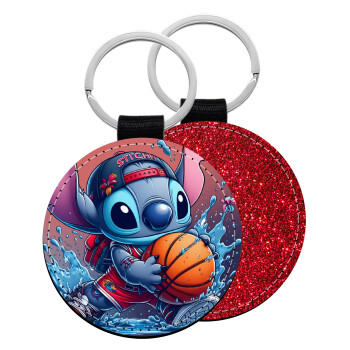 Stitch Basketball, Μπρελόκ Δερματίνη, στρογγυλό ΚΟΚΚΙΝΟ (5cm)