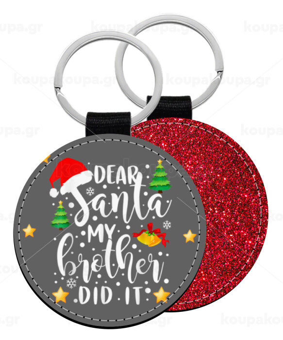 Dear santa my Brother did it, Μπρελόκ Δερματίνη, στρογγυλό ΚΟΚΚΙΝΟ (5cm)