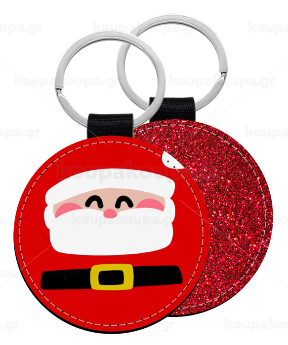 Simple Santa, Μπρελόκ Δερματίνη, στρογγυλό ΚΟΚΚΙΝΟ (5cm)
