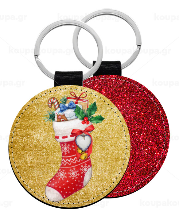 Xmas boot, Μπρελόκ Δερματίνη, στρογγυλό ΚΟΚΚΙΝΟ (5cm)