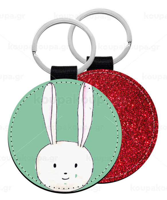 Ο λαγός του πάσχα, Μπρελόκ Δερματίνη, στρογγυλό ΚΟΚΚΙΝΟ (5cm)