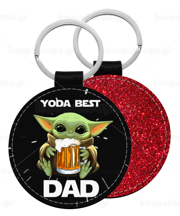 Yoda Best Dad, Μπρελόκ Δερματίνη, στρογγυλό ΚΟΚΚΙΝΟ (5cm)
