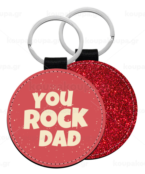 YOU ROCK DAD, Μπρελόκ Δερματίνη, στρογγυλό ΚΟΚΚΙΝΟ (5cm)