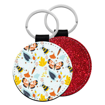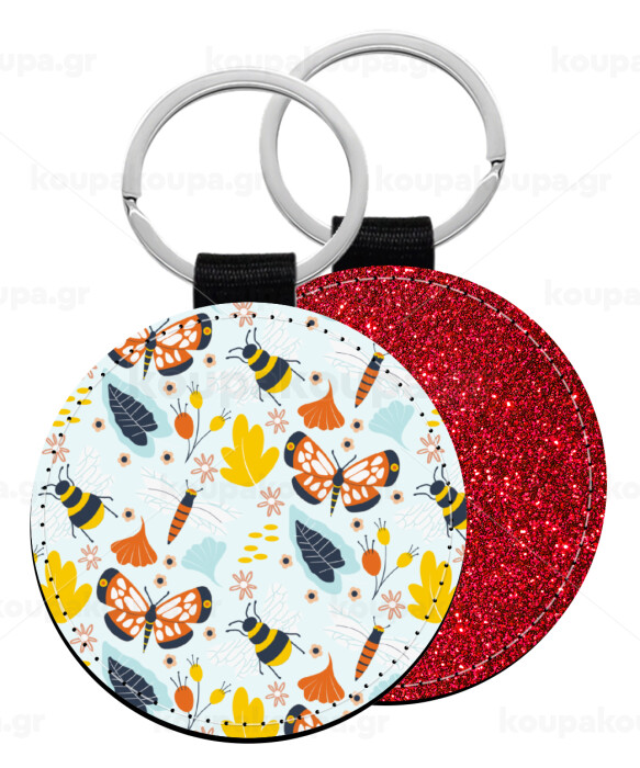 Πεταλούδες, Μπρελόκ Δερματίνη, στρογγυλό ΚΟΚΚΙΝΟ (5cm)