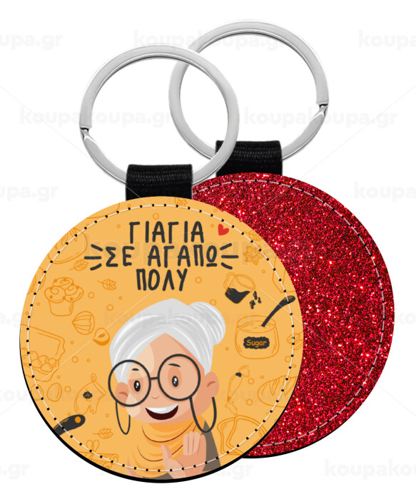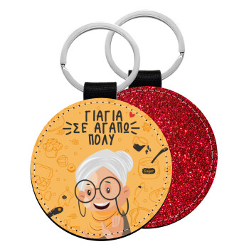 Γιαγιά σε αγαπώ πολύ!, Μπρελόκ Δερματίνη, στρογγυλό ΚΟΚΚΙΝΟ (5cm)