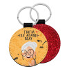 Leatherette keychain with glitter on one side and high resistance leatherette on the other. Safety ring for the keys.