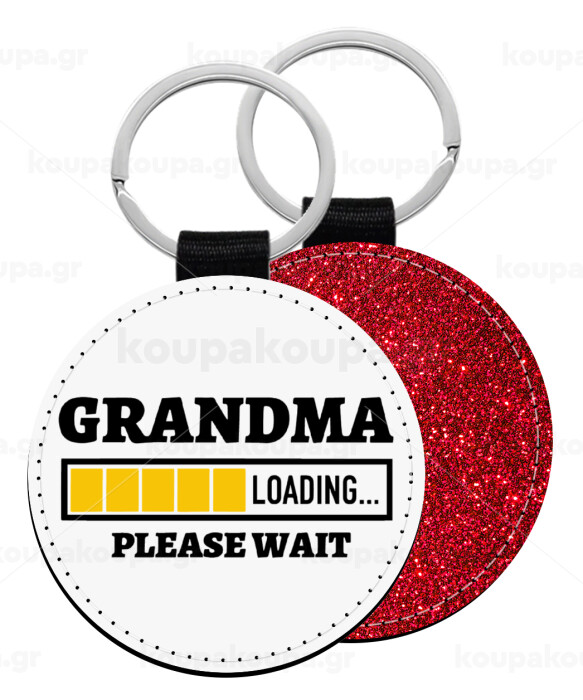 Grandma Loading, Μπρελόκ Δερματίνη, στρογγυλό ΚΟΚΚΙΝΟ (5cm)