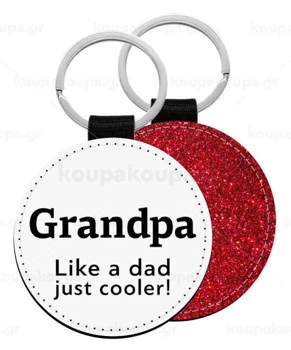Grandpa, like a dad, just cooler, Μπρελόκ Δερματίνη, στρογγυλό ΚΟΚΚΙΝΟ (5cm)
