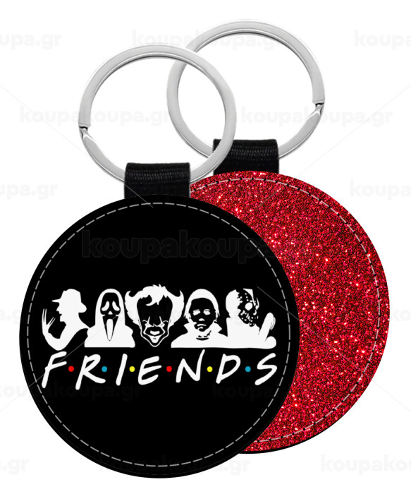 Halloween Friends, Μπρελόκ Δερματίνη, στρογγυλό ΚΟΚΚΙΝΟ (5cm)