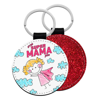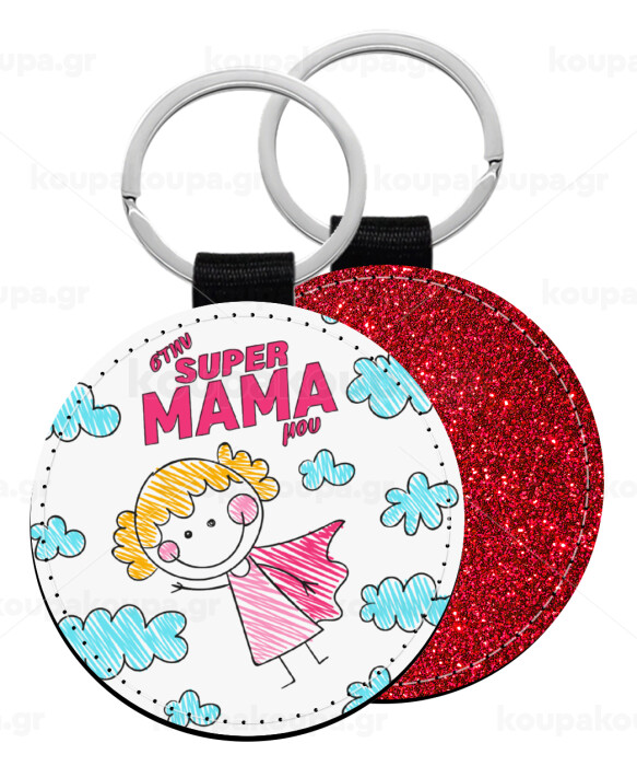 Στην SUPER μαμά μου, comic, Μπρελόκ Δερματίνη, στρογγυλό ΚΟΚΚΙΝΟ (5cm)
