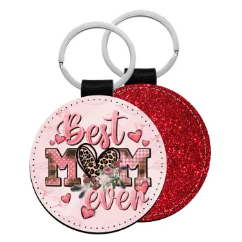 Best mom ever Mother's Day, Μπρελόκ Δερματίνη, στρογγυλό ΚΟΚΚΙΝΟ (5cm)