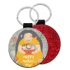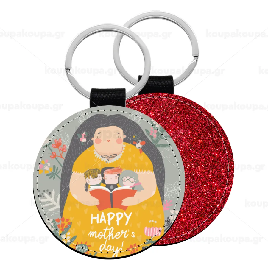 Cute mother reading book, happy mothers day, Μπρελόκ Δερματίνη, στρογγυλό ΚΟΚΚΙΝΟ (5cm)
