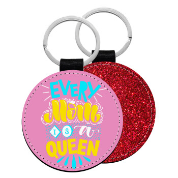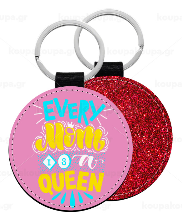 Every mom is a Queen, Μπρελόκ Δερματίνη, στρογγυλό ΚΟΚΚΙΝΟ (5cm)