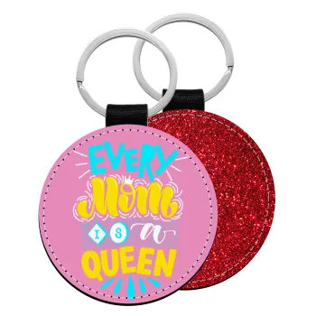 Every mom is a Queen, Μπρελόκ Δερματίνη, στρογγυλό ΚΟΚΚΙΝΟ (5cm)