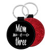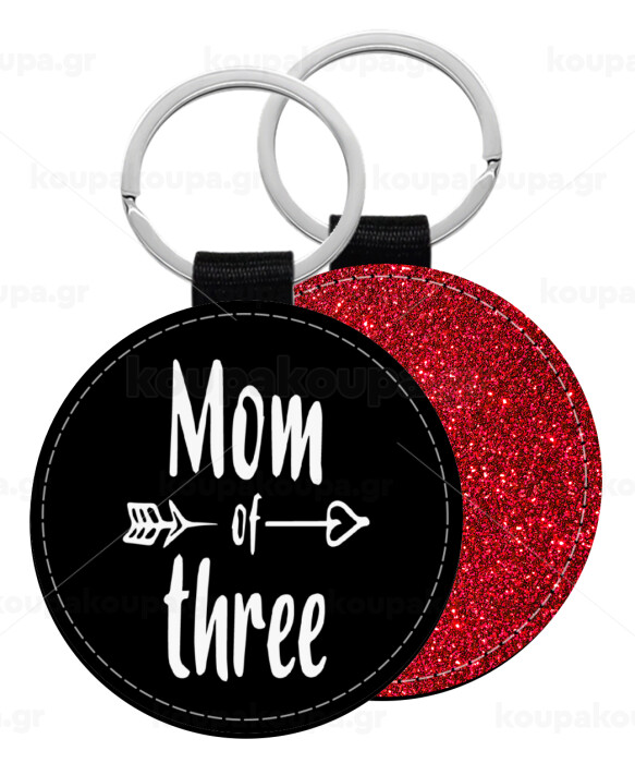 Mom of three, Μπρελόκ Δερματίνη, στρογγυλό ΚΟΚΚΙΝΟ (5cm)