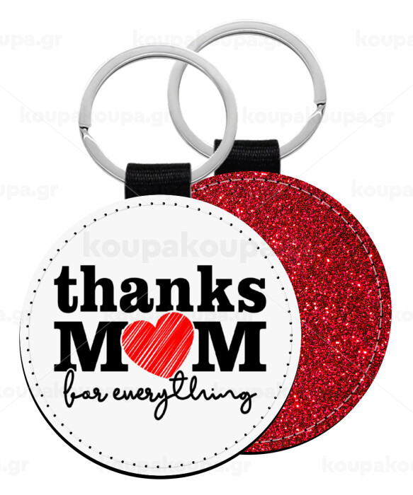 Thanks mom for everything, Μπρελόκ Δερματίνη, στρογγυλό ΚΟΚΚΙΝΟ (5cm)