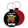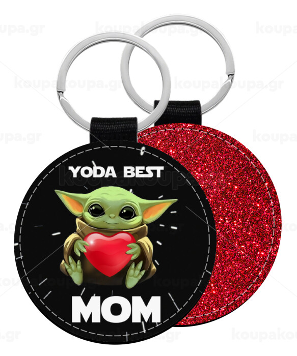 Yoda Best mom, Μπρελόκ Δερματίνη, στρογγυλό ΚΟΚΚΙΝΟ (5cm)
