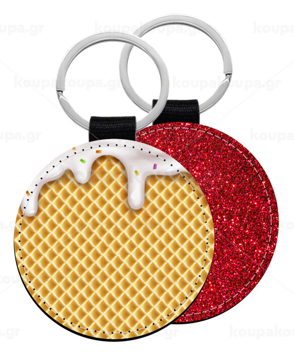 Παγωτό, Μπρελόκ Δερματίνη, στρογγυλό ΚΟΚΚΙΝΟ (5cm)