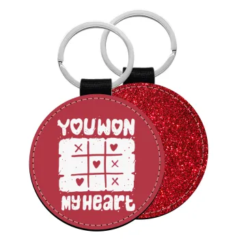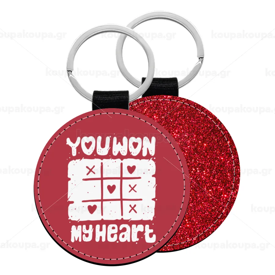 Τρίλιζα you won my heart, Μπρελόκ Δερματίνη, στρογγυλό ΚΟΚΚΙΝΟ (5cm)