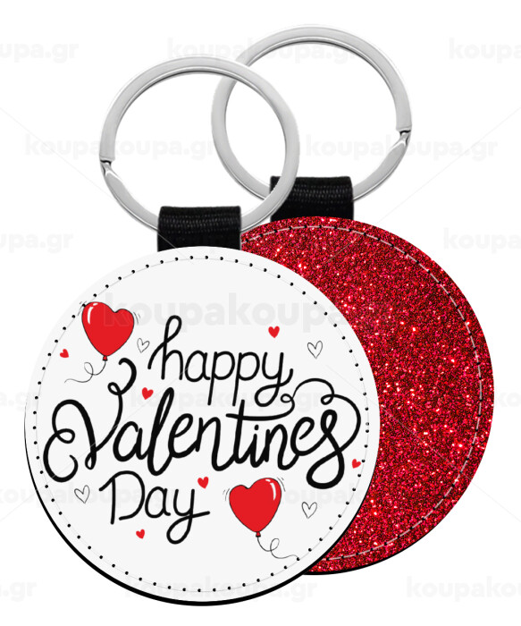 Happy Valentines Day!!!, Μπρελόκ Δερματίνη, στρογγυλό ΚΟΚΚΙΝΟ (5cm)