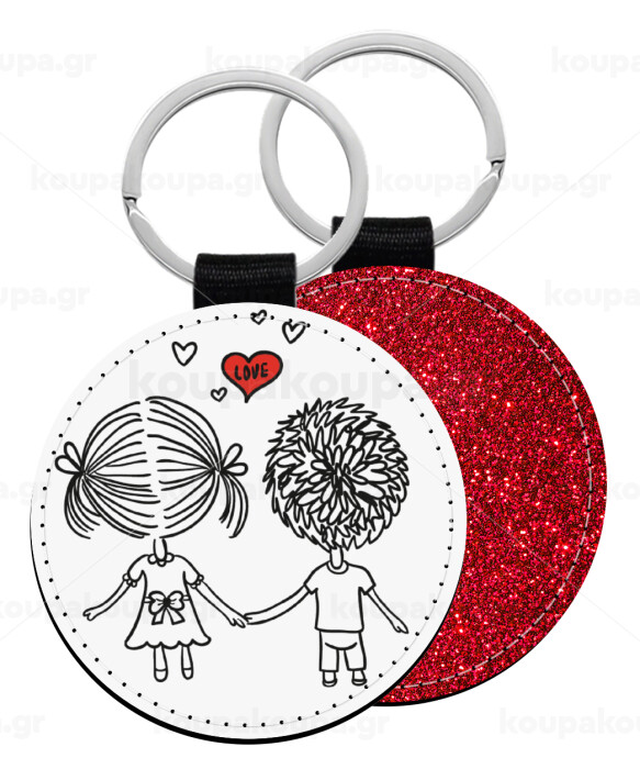 Hold my hand for ever, Μπρελόκ Δερματίνη, στρογγυλό ΚΟΚΚΙΝΟ (5cm)