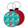 Leatherette keychain with glitter on one side and high resistance leatherette on the other. Safety ring for the keys.